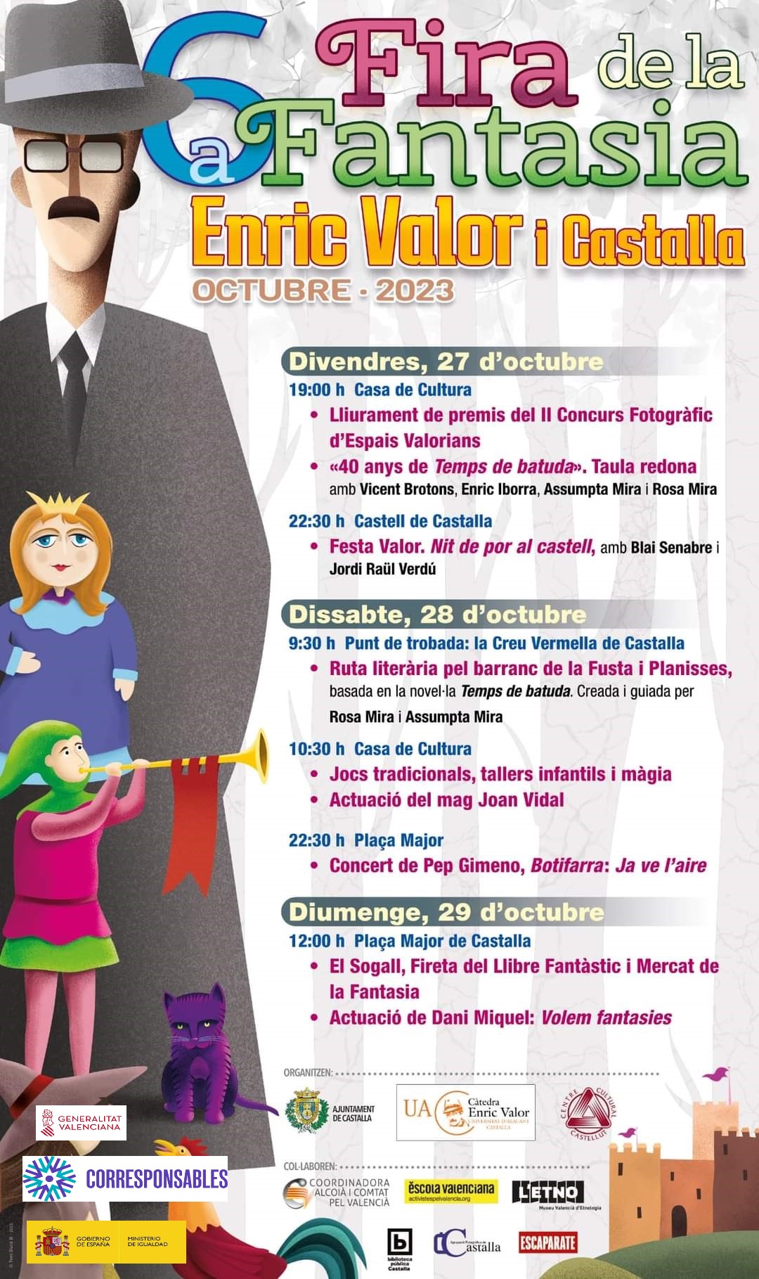 Del 27 al 29 d’octubre de 2023, Castalla es converteix en la capital de la fantasia valenciana amb la celebració de la 6a edició de la Fira de la Fantasia, un esdeveniment cultural que ret homenatge a Enric Valor, un dels escriptors més universals de la nostra literatura.