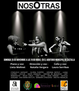 El Ayuntamiento de Castalla invita a toda la ciudadanía a la actuación musical «Nosotras», un evento programado en el marco de la V Semana contra la Violencia de Género, organizada para conmemorar el 25 de noviembre, Día Internacional para la Eliminación de la Violencia contra la Mujer.