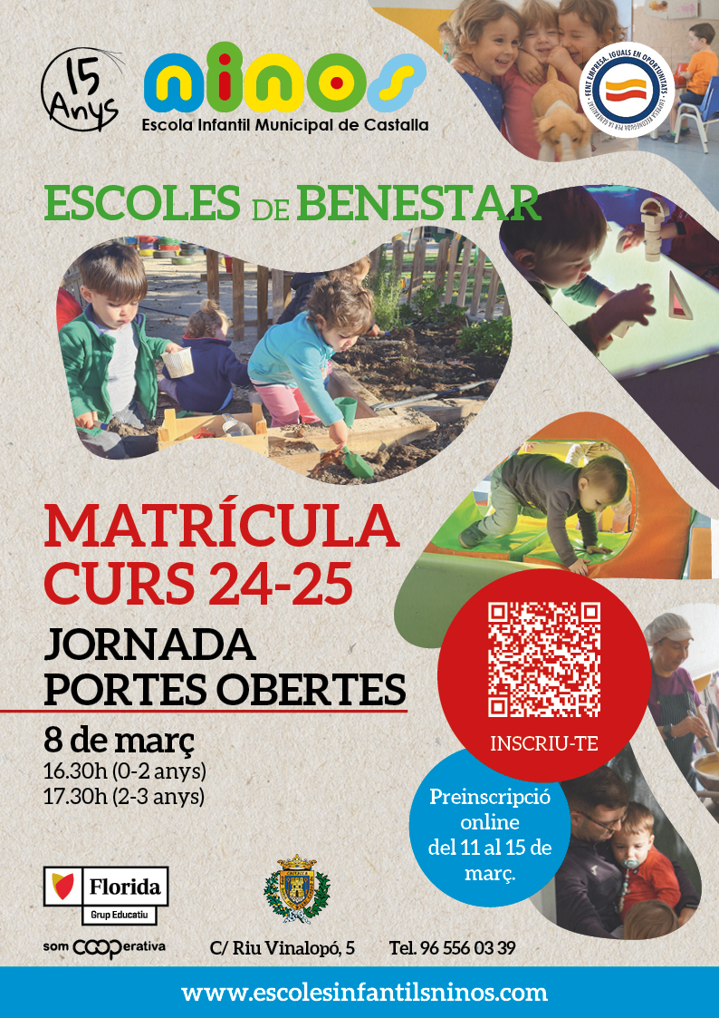 Fes la teua inscripció a través de www.escolesinfantilsninos.com o escanejant el codi QR del cartell.