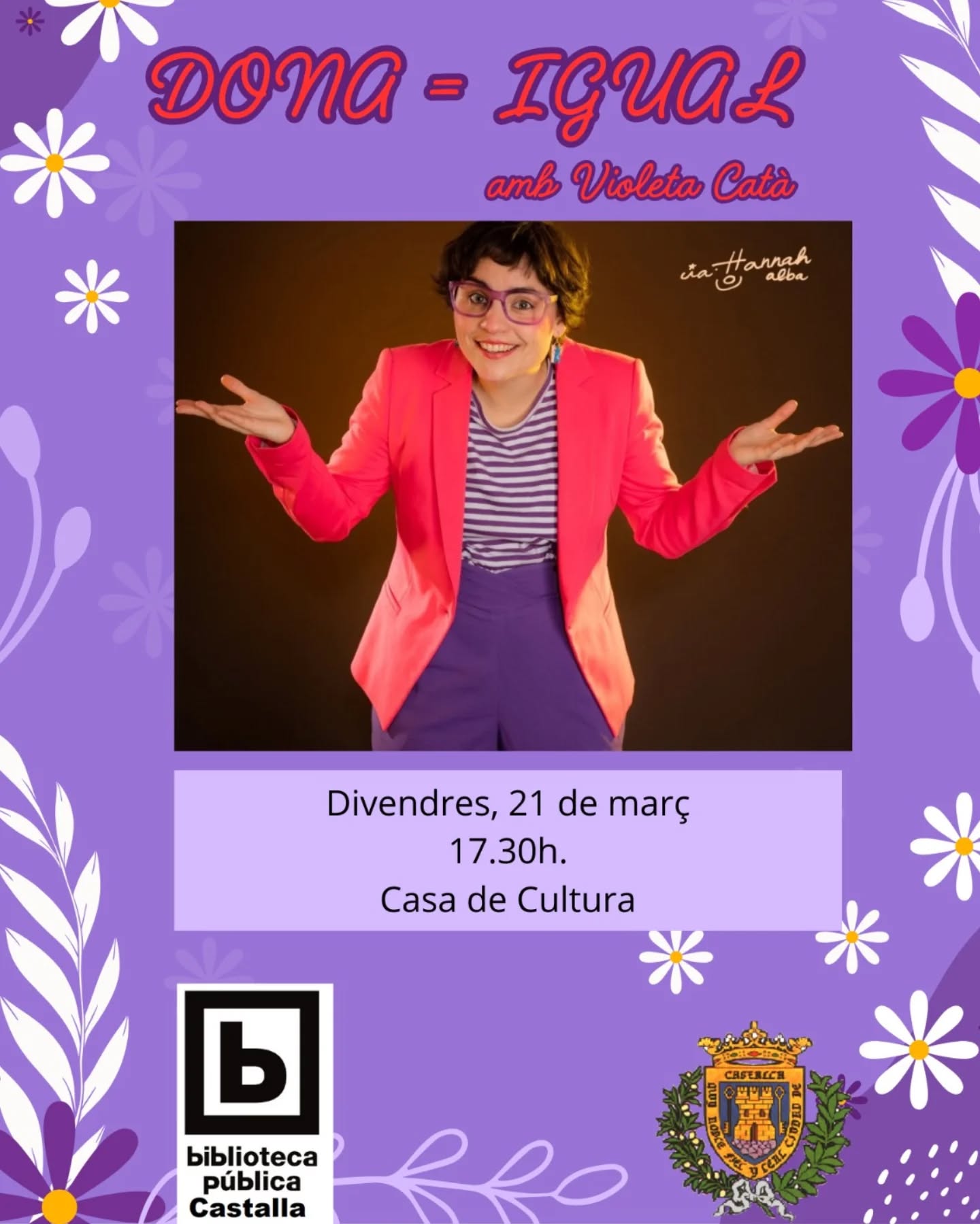 La Biblioteca Pública de Castalla us convida al contacontes «Dona = Igual», a càrrec de Violeta Catà (Hannah Alba), dins de la programació especial pel Dia Internacional de la Dona.