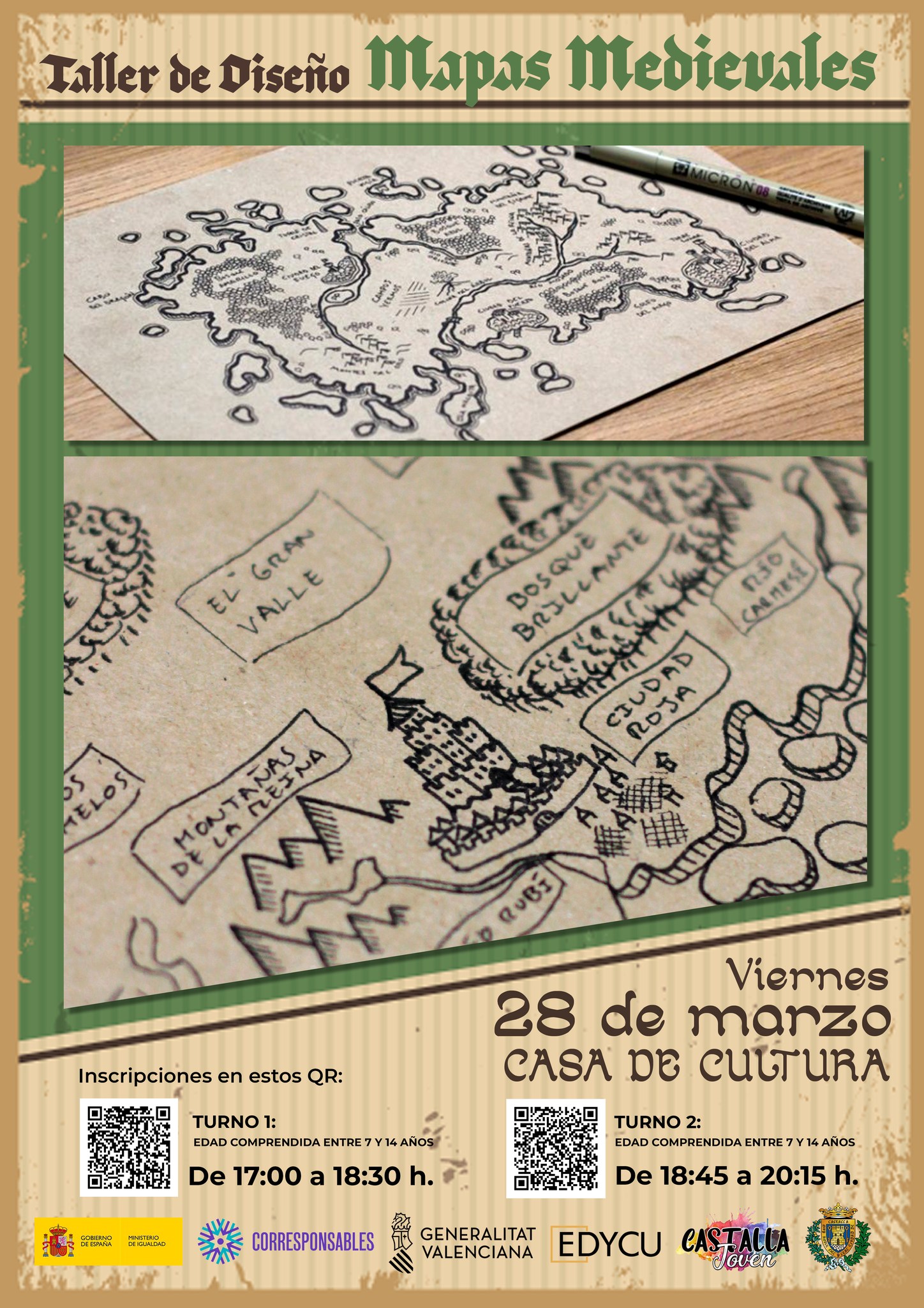 Este viernes 28 de marzo tienes una nueva oportunidad para dejar volar tu imaginación en nuestro taller «Diseña un Mapa Medieval», que tendrá lugar en la Casa de Cultura.