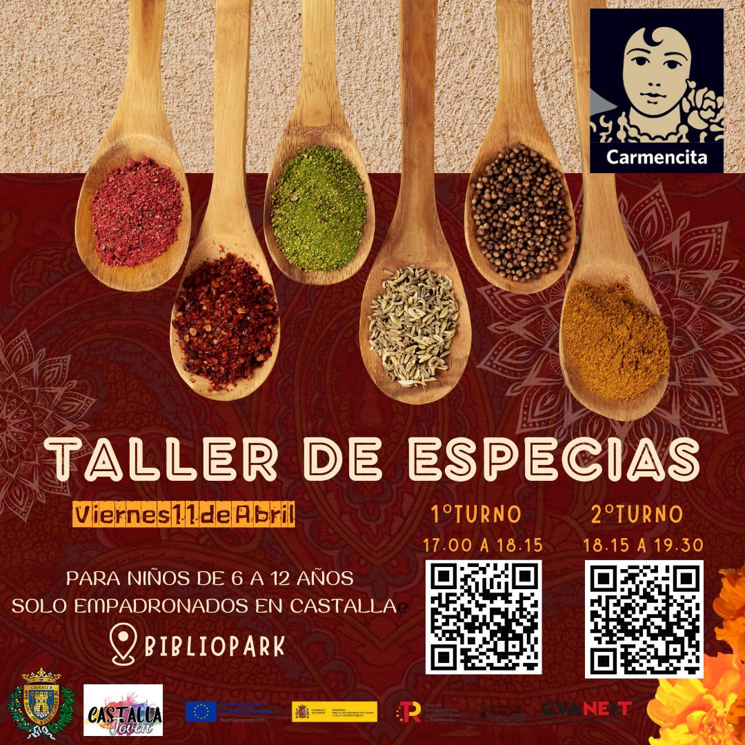 El taller ofereix una experiència sensorial i educativa on els més menuts podran descobrir les espècies, els seus colors, olors i sabors, de la mà de Carmencita. Una activitat divertida, diferent i plena d’aromes!
